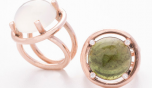 Anelli in oro rosso argento con quarzo verde, ametista e topazio azzurro